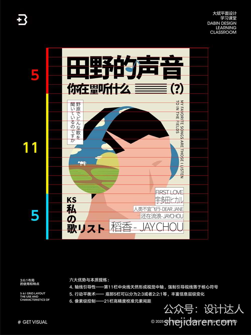 本质:用数学对称制造视觉神殿——两侧5栏为柱廊(仪式感),中央11栏为圣殿(叙事场),适合需建立权威感与平衡美的场景。