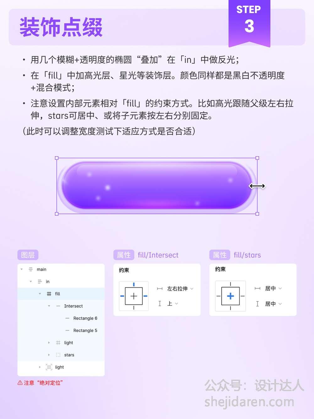 ⚠️ 注意设置内部元素相对「fill」的约束方式。比如高光跟随父级左右拉伸,stars可居中、或将子元素按左右分别固定。