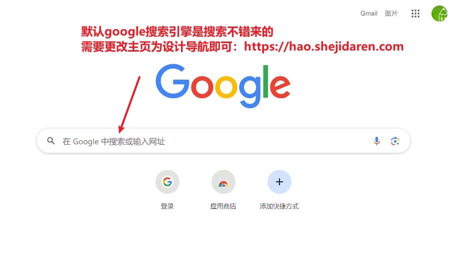 默认google搜索引擎是搜索不错来的,需要更改主页为设计导航即可:https://hao.shejidaren.com