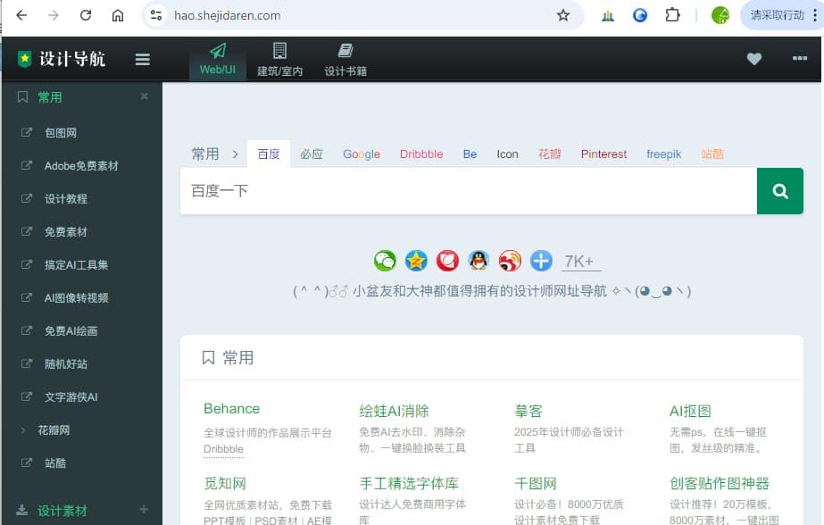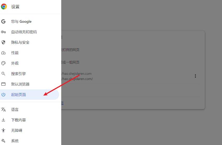 设置方法:右上角菜单 → 设置 → 起始页面 → 设置为https://hao.shejidaren.com