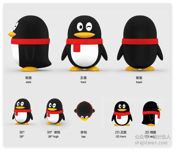 色彩更绝!QQ 蓝是 Pantone 2995C,红围巾是 199C,连黑黄白都给了 CMYK/RGB/HEX 全色值,不管印海报还是做 APP 图标,色准都不翻车。还有字体,中文方正兰亭黑、英文 Helvetica Neue,连子品牌(比如 QQ 钱包)都要跟着主视觉走,既统一又不呆板~